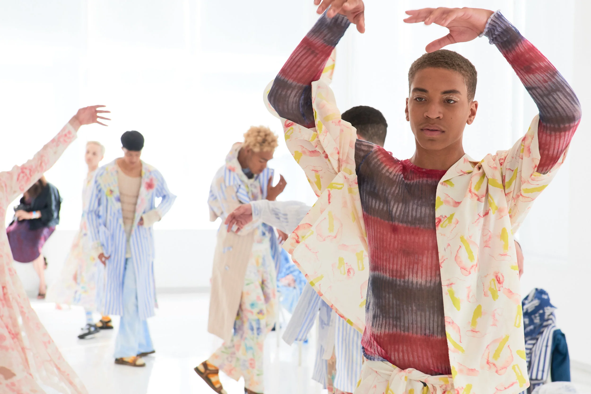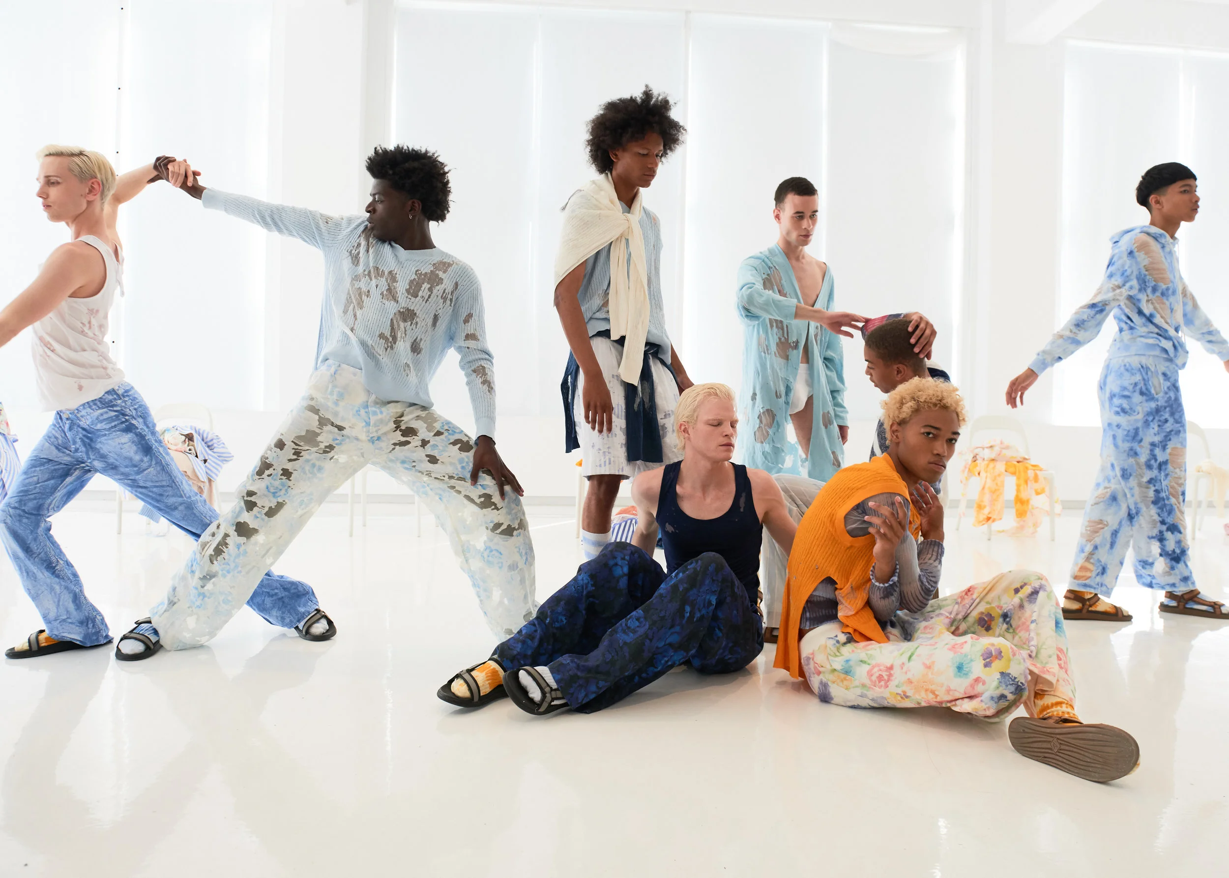 Story 1 adds ‘Golden Leaf’ and ‘Azure’ – strong autumnal shades with extravagant cut details including the playful ruching details on the loungewear shirts and pants. All of the styles for women and men can be mixed and matched with each other and work just as well outside as they do at home.