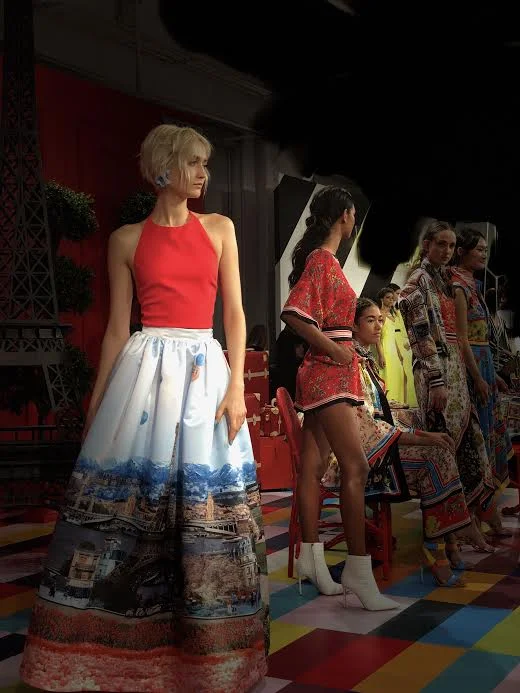 Alice + Olivia signature patterns, sequins and overall glam prevailed. A ball skirt with an image of the Eiffel Tower reigned supreme - it was exquisite. The collection is vibrant in every sense of the word and is comprised of must-have separates - from palazzo pants, bomber jackets, blazers and full skirts - there is something for everyone. There (as usual) was an abundance of florals and intricate pattern, on almost everything, to keep the A+O girl happy.
